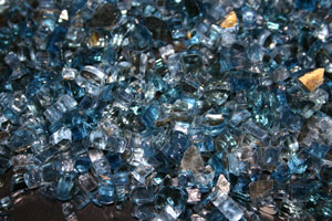 The fire pit below has V Blue Base Glass, V Blue Reflective Base Glass and topped with Cobalt Blue Topper.